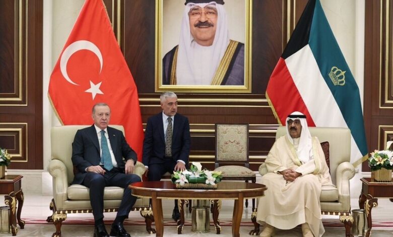 كما أقام حضرة صاحب السمو أمير البلاد الشيخ مشعل الأحمد الجابر الصباح حفظه الله ورعاه بقصر بيان ظهر اليوم مأدبة غداء على شرف فخامة الرئيس رجب طيب أردوغان رئيس جمهورية تركيا الصديقة والوفد الرسمي المرافق لفخامته وذلك بمناسبة زيارته الرسمية للبلاد.