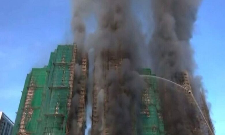 وأضافت التقارير الإعلامية أن الحريق انتشر على سقالات مصنوعة من أعواد الخيزران، مقامة حول الجهة الخارجية من المجمع في مقاطعة تاي بو بالمدينة. وأظهرت مقاطع البث المباشر من الموقع حريقا شديدا سريع الاشتعال.