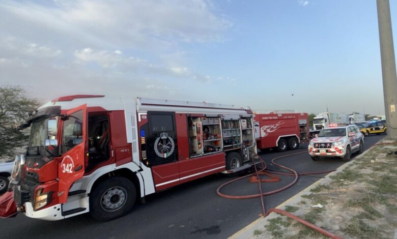 أعلنت قوة الإطفاء العام وفاة خمسة أشخاص وإصابة شخص إثر حادث تصادم بين مركبتين مما أدى إلى حريق إحداها على طريق الدائري السادس مقابل منطقة (سعد العبدالله).