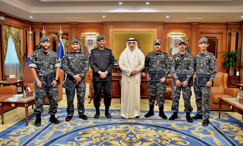 كرم النائب الأول لرئيس مجلس الوزراء ووزير الداخلية الشيخ فهد اليوسف الحاصلين على المراكز الأولى في دورة حفظ النظام ومكافحة الشغب التي عقدت أخيراً في المملكة الأردنية الهاشمية والفريق المعني بإعداد كتيب الدليل الإرشادي لتنفيذ الأحكام الجنائية.
