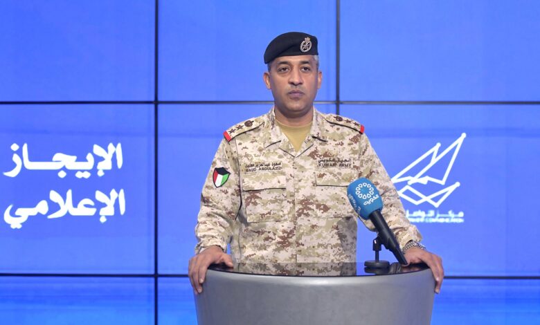 جاء ذلك في كلمة المتحدث الرسمي باسم وزارة الدفاع الكويتية العقيد الركن سعود العطوان اليوم الثلاثاء خلال الإيجاز الإعلامي بشأن الأحداث الراهنة واستعراض آخر التطورات الميدانية في ضوء العدوان الإيراني على دولة الكويت.