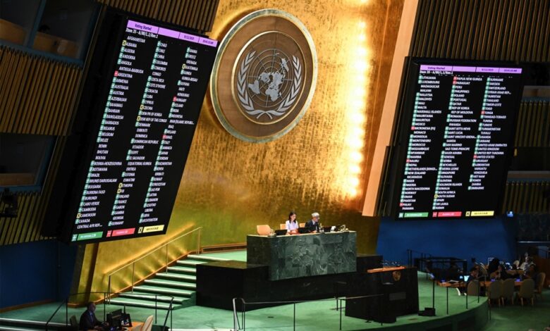 الأمم المتحدة تؤيد بأغلبية ساحقة إعلان حل الدولتين