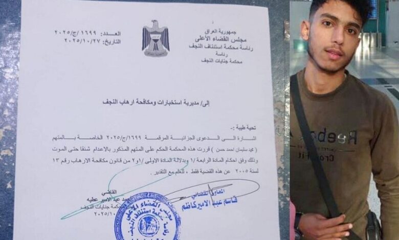 وأوضح مجلس القضاء الأعلى في العراق أن الحكم الصادر عن محكمة جنايات النجف بحق المتهم السوري يشمل أيضا دعوته أشخاصا للانضمام إلى عصابات “داعش”، إضافة إلى نشره مقاطع فيديو قام فيها بحرق صورة تجسّد الإمام علي بن أبي طالب، بهدف “إثارة الفتن والفوضى داخل المجتمع”.