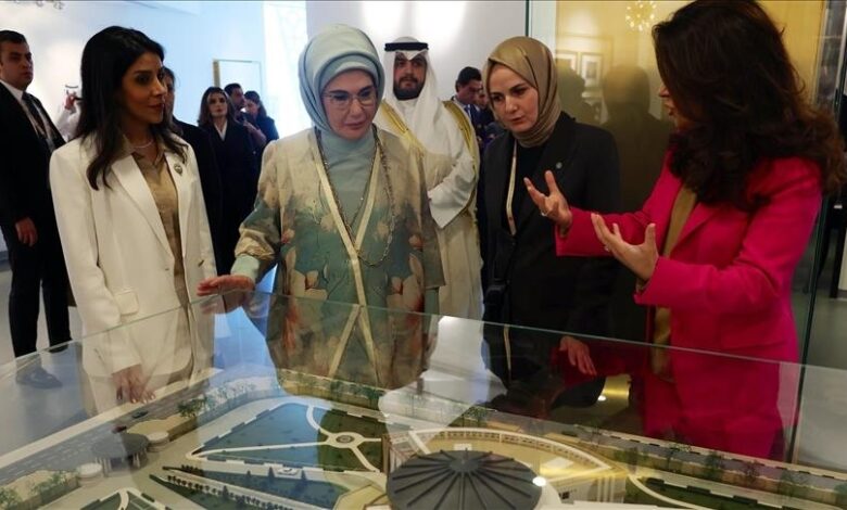 وأجرت أمينة أردوغان جولة في أقسام المتحف، واطلعت على مراحل بنائه وتاريخه.