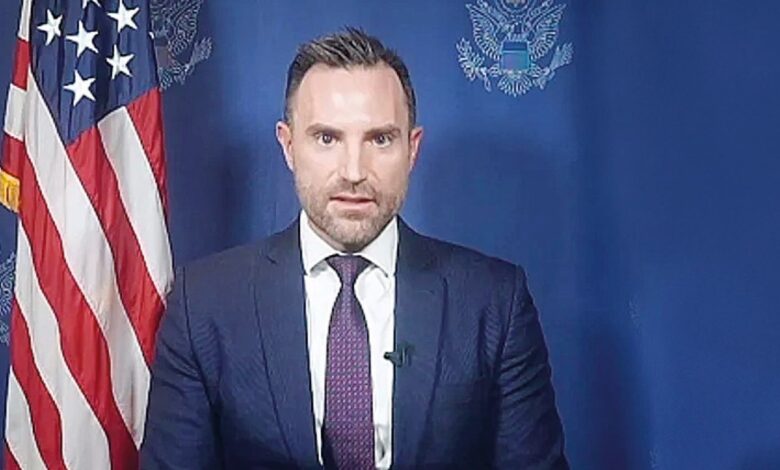 وحول موقف الإدارة الأمريكية من الخطوات الأوروبية المتزايدة للاعتراف بدولة فلسطين وعما إذا كانت هناك نية لإعادة تقييم الموقف الأمريكي من الاعتراف بدولة فلسطين في ضوء المستجدات الدولية والإقليمية، قال: موقفنا واضح وثابت، الاعترافات الأوروبية بدولة فلسطينية خطوات أحادية ورمزية لا تغيّر الحقائق على الأرض ولا تُنهي الحرب، وهذه الخطوات قد تعكس اعتبارات سياسية داخلية في بعض الدول، لكنها لا تُسهم في معالجة جذور الأزمة.