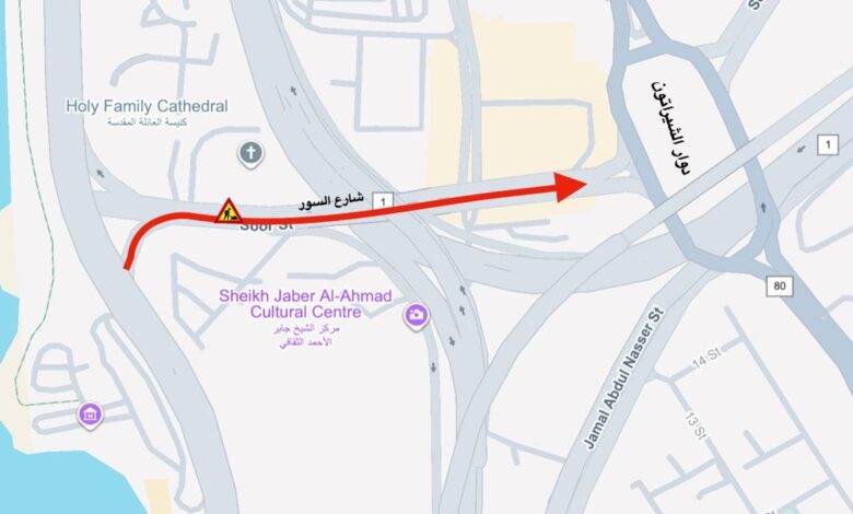 أعلنت الإدارة العامة للمرور إغلاق كلي لشارع السور بدايةً من تقاطع مركز الشيخ جابر الثقافي مع شارع الخليج العربي باتجاه دوار الشيراتون، وذلك اعتباراً من اليوم الجمعة حتى بعد غد الأحد وذلك لإجراء الصيانة اللازمة للطريق. وفق ما نشرته الإدارة عبر حسابها على منصة «إكس».