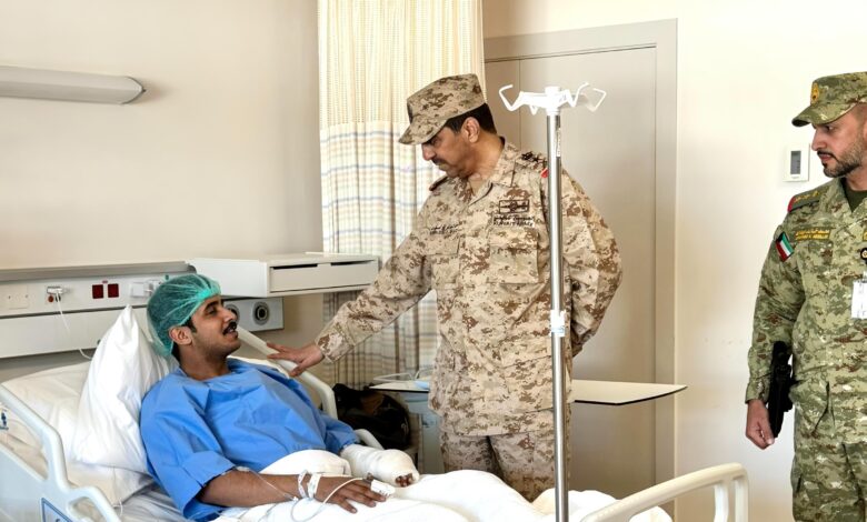 وأشاد الفريق الركن الشريعان وفق بيان صادر عن رئاسة الأركان العامة للجيش بما أبدوه من إخلاص وكفاءة وجاهزية في سبيل حماية أمن الوطن وسلامة أراضيه داعيا الله تعالى أن يمن عليهم بالشفاء العاجل وأن يحفظ الله الكويت وقيادتها وشعبها من كل مكروه.