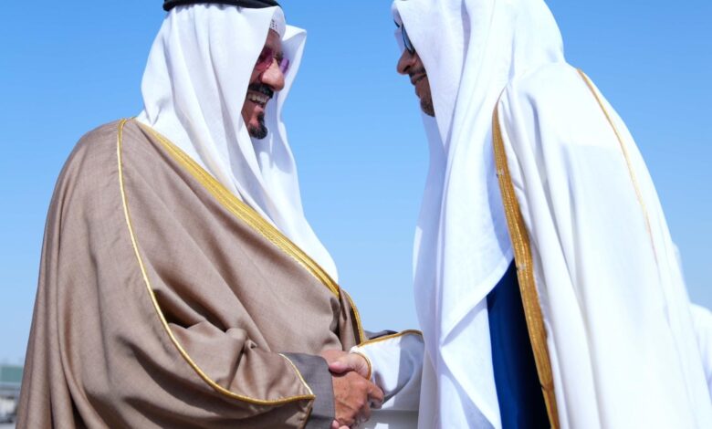 وكان في مقدمة مستقبليه على أرض مطار الكويت الدولي سمو الشيخ أحمد عبدالله الأحمد الصباح رئيس مجلس الوزراء ورئيس ديوان رئيس مجلس الوزراء عبدالعزيز دخيل الدخيل ووزير الخارجية الشيخ جراح جابر الأحمد الصباح ونائب وزير الخارجية بالتكليف السفير عزيز رحيم الديحاني ومساعد وزير الخارجية لشؤون مجلس التعاون لدول الخليج العربية السفير نجيب عبدالرحمن البدر وسفير دولة قطر لدى دولة الكويت علي بن عبدالله آل محمود وكبار المسؤولين في الدولة.