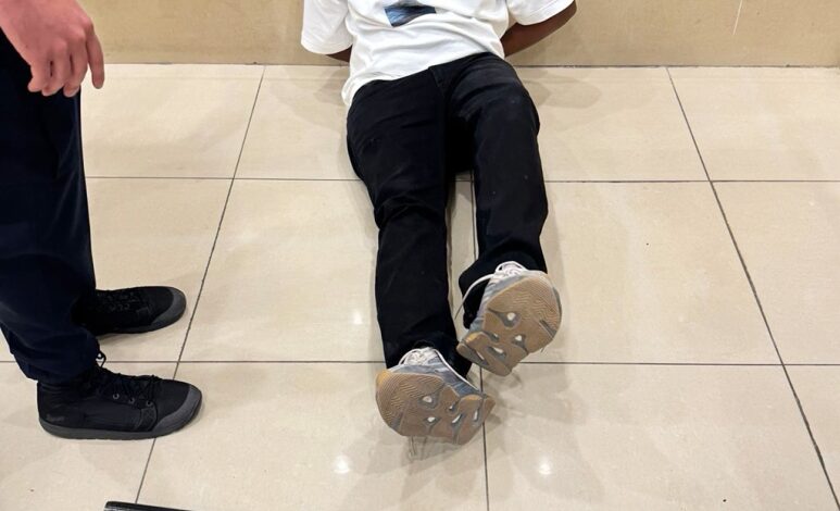 حيث وفور رصد المقطع وتلقي البلاغ، تم توجيه قوة من الإسناد إلى الموقع، ولدى وصول القوة، تمت مشاهدة الشخص المعني وهو بحالة غير طبيعية ويحمل شبلا وعمودًا حديديا، وقد ألحق أضرارًا بعدد (7) مركبات عبر تكسير زجاجها.