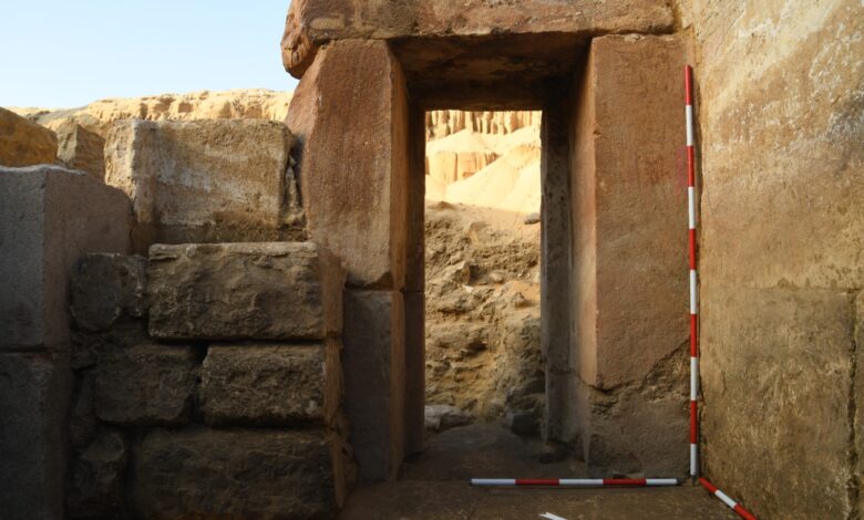 وأضاف أن “أعمال الحفائر الحالية كشفت أيضا عن منحدر يعتقد أنه كان يربط المعبد بالنيل أو أحد فروعه وأن المؤشرات الأولية تؤكد امتداد المبنى شمالا وفق الطراز المعماري لمجموعة معابد الأسرة الخامسة ومنها معبد الوادي الخاص بهرم الملك (ساحورع) في (أبو صير)”.