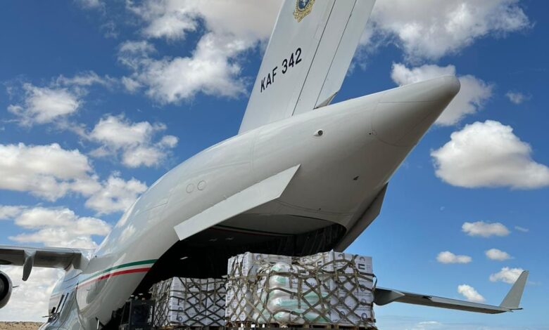 وصول طائرة المساعدات الكويتية الـ 19 لإغاثة غزة إلى مطار العريش المصري