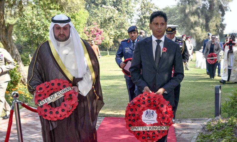 وأضاف أن الجيش البريطاني وبالتعاون مع قوات التحالف وقفوا مع الكويت في أكثر الأوقات عتمة حتى تحريرها في فبراير عام 1991 مضيفا أننا اليوم نقف احتراما لهؤلاء الجنود الذين قدموا أرواحهم بكل شجاعة والتزام من أجل السلام والحرية والوقوف مع الحق أمام الباطل. وأضاف أن ذكرى اليوم التي تحمل معاني عميقة للشعب الكويتي تشدد على قيم الولاء والخدمة مع نكران الذات وأن تضحيات هؤلاء “تذكرنا بالثمن الباهظ للسلام”.